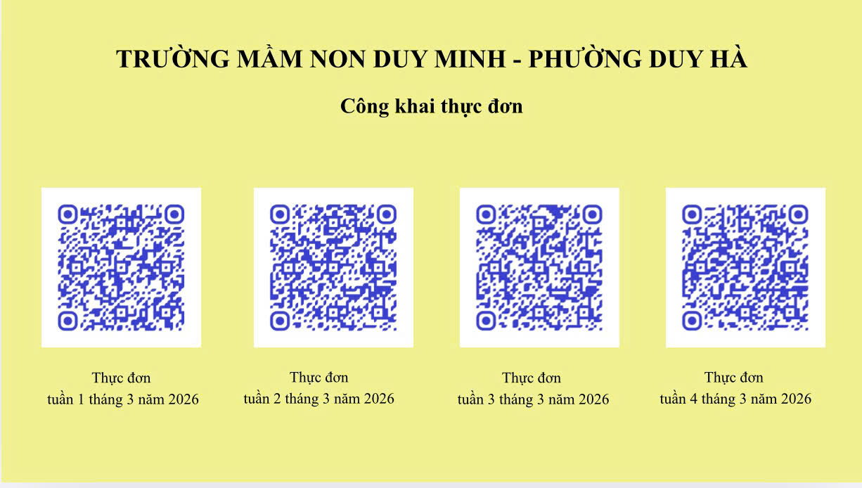 Trường mầm non Duy Minh công khai thực đơn tháng 3 năm 2026