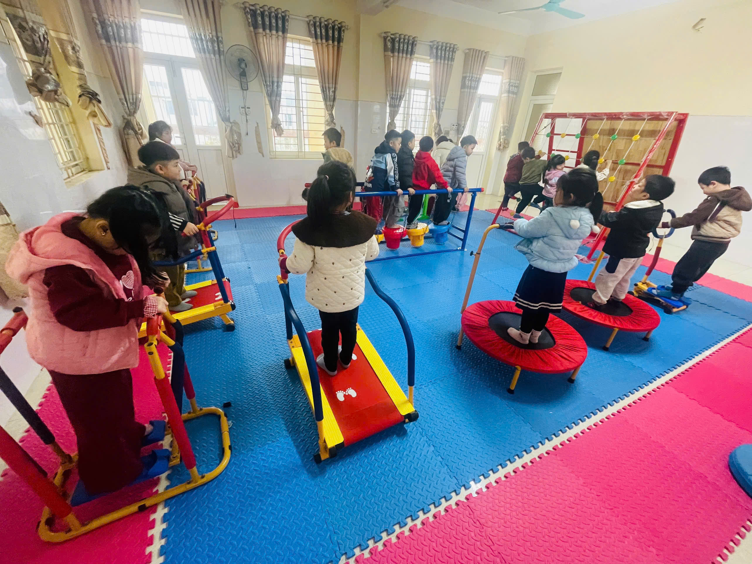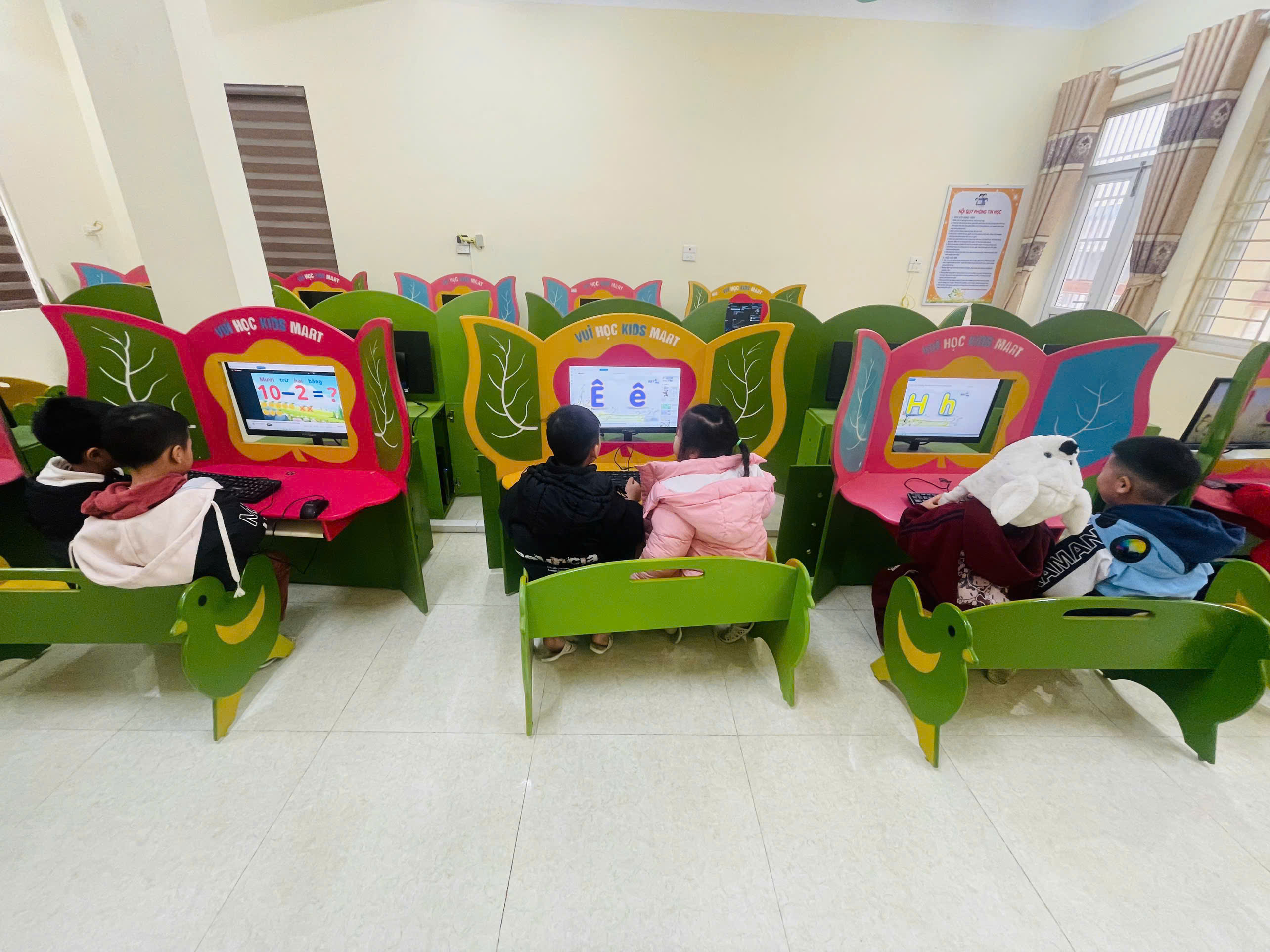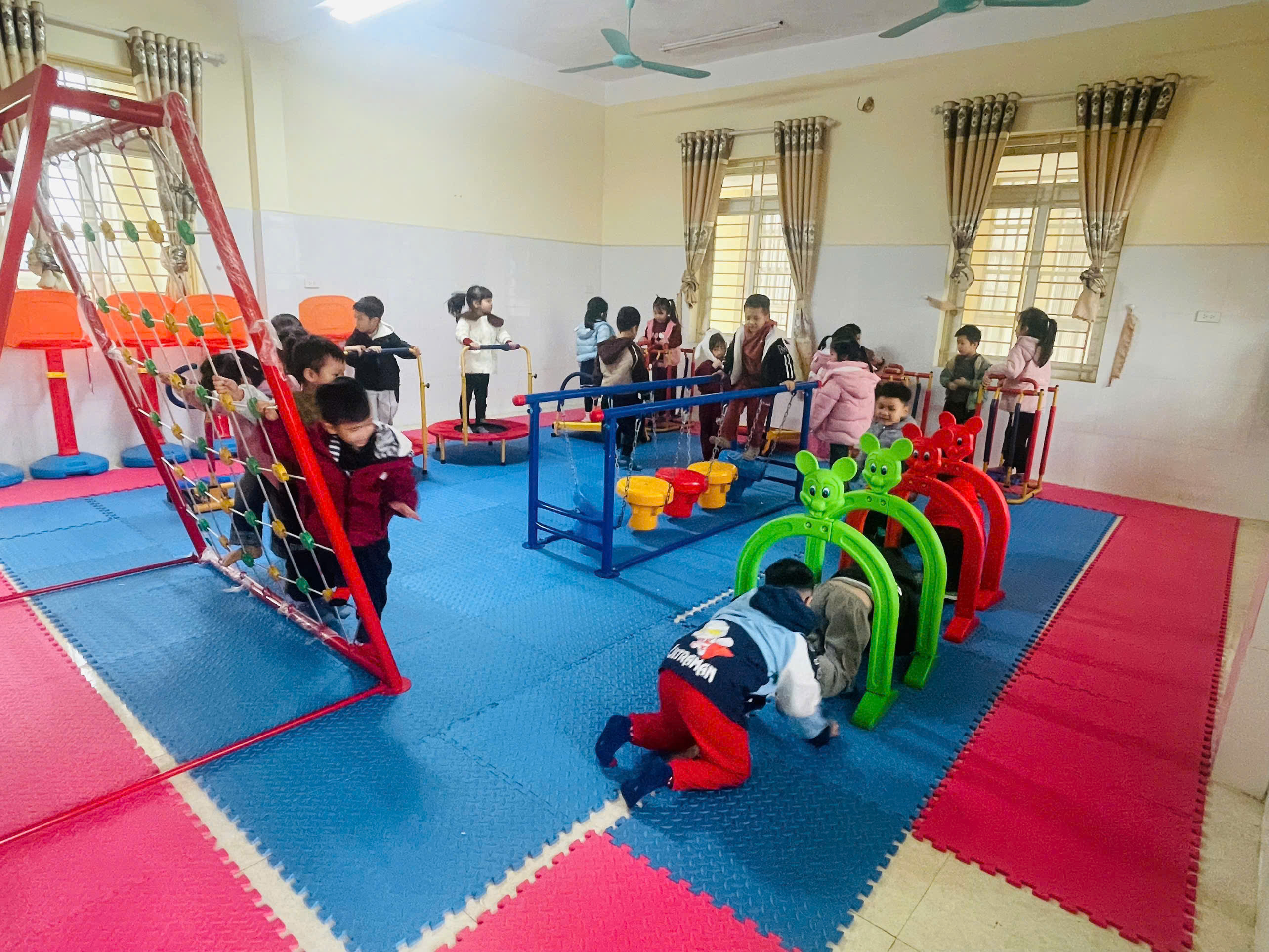 Trẻ hoạt động ở các phòng chức năng( Phòng thể chất, phòng tin học, …) giúp trẻ vui chơi, học hỏi, khám phá, phát triển toàn diện thể chất,…