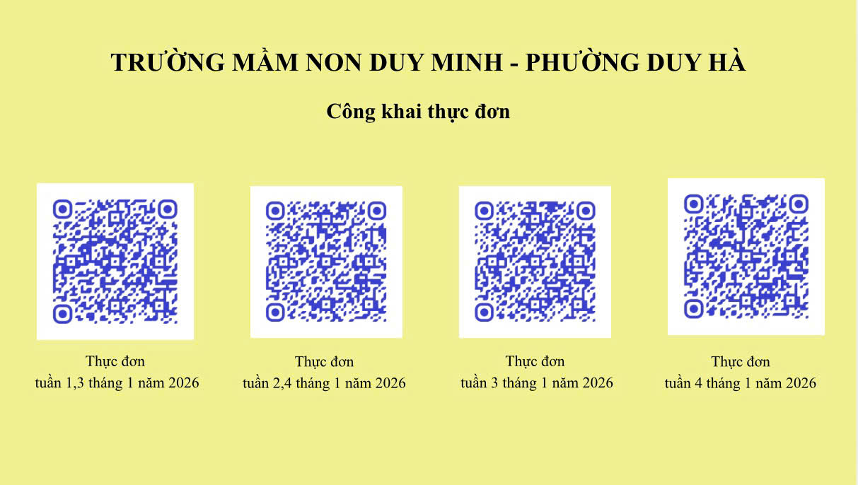 Trường mầm non Duy Minh công khai thực đơn tháng 1 năm 2026