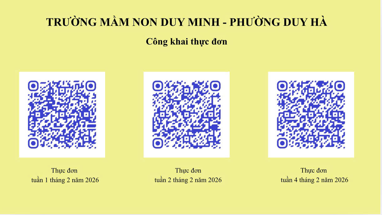 Trường mầm non Duy Minh công khai thực đơn tháng 2 năm 2026